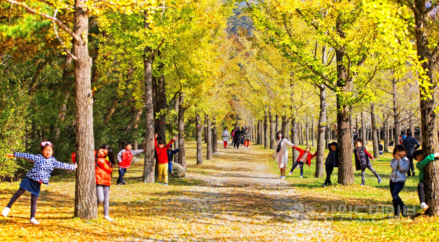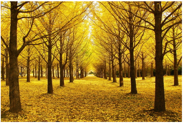 세번째로 홍천 은행나무숲, 홍천 가을을 대표하는 명소로 은향나무가 5미터 간격으로 가로세로 열 맞추어 2천여 그루가 잘 심어져 있다고 합니다. 그리고 은행잎이 장관을 연출하는 곳이라고 합니다. 때문에 한 개인이 30년 동안 가꾼 숲으로 인근의 삼봉약수의 효염을 듣고 만성 소화불량인 아내의 쾌유를 비는 마음으로 은행나무를 한 그루씩 심기 시작했다는 낭만적인 이야기로 만들어진 곳이라고 알려져 있습니다.